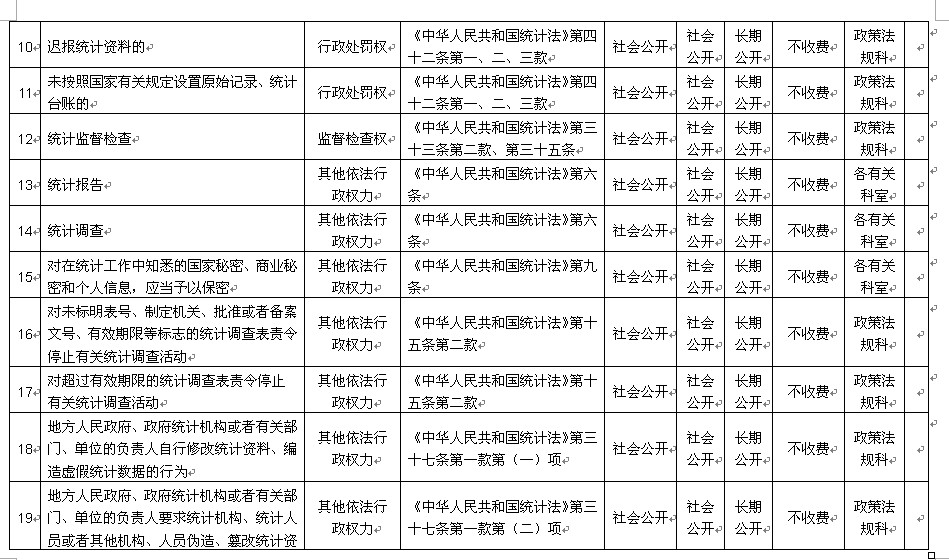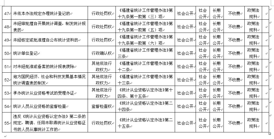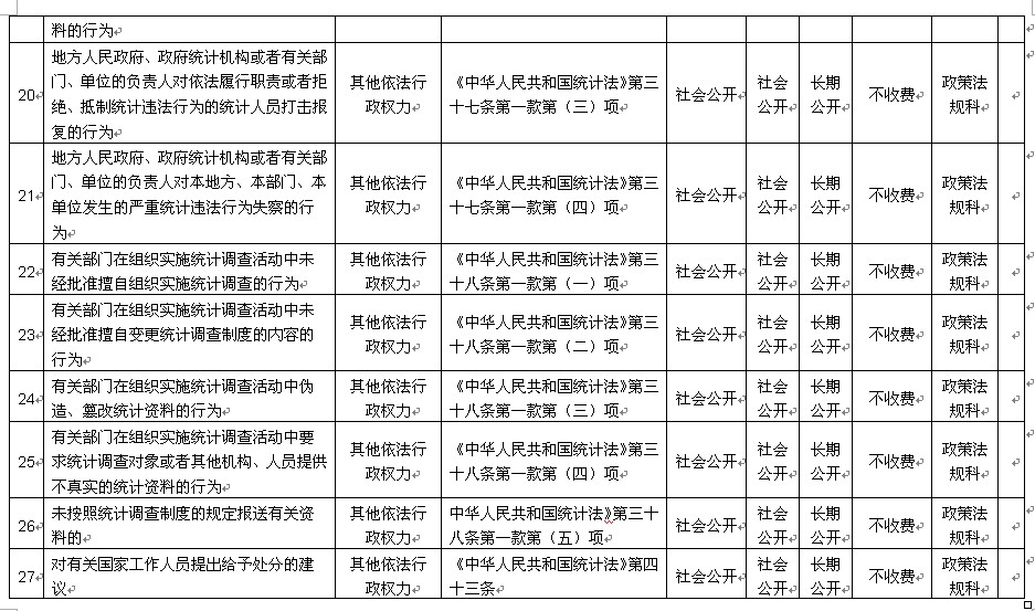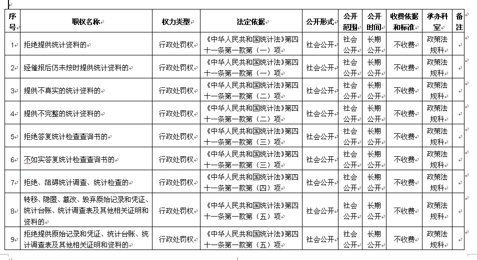 三明市统计局行政职权目录