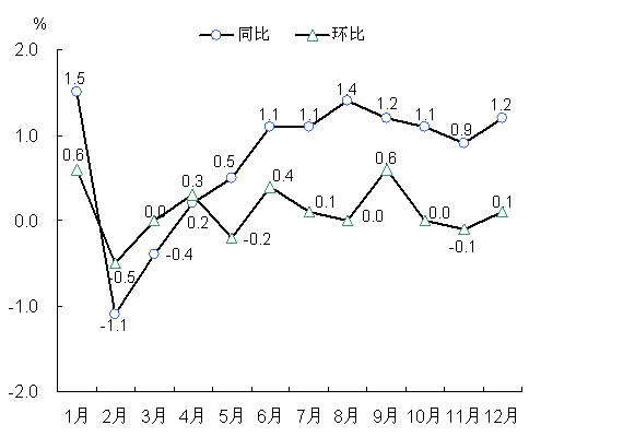 图1 2017年居民消费价格月度涨跌幅度