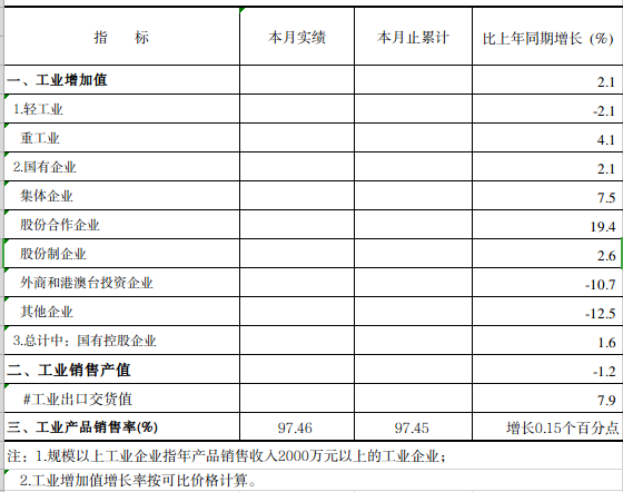 2023年一季度规模以上工业增加值主要数据