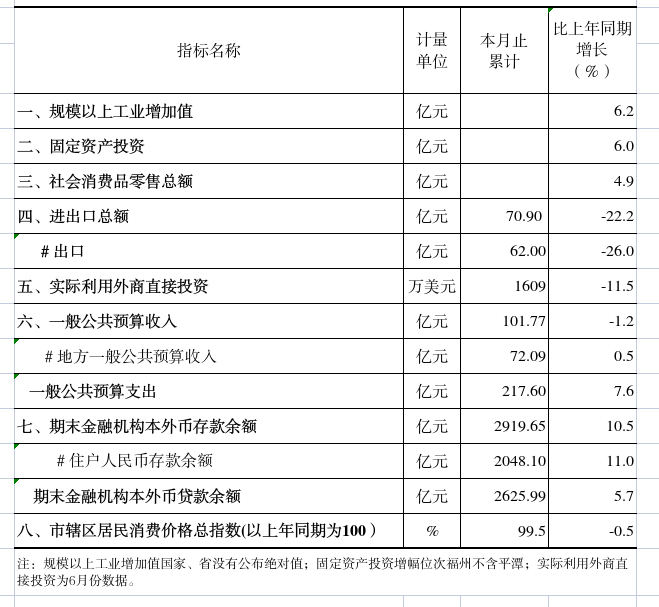 2025年1-7月三明市国民经济主要指标