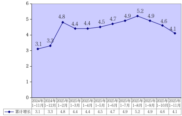 1-11月全市社会消费品零售总额同比增长4.1%,增速位居全省第5位,比上月提高1位。